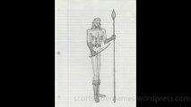 A video of a pencil sketch, of a barbarian. Drawn by Scott Snider. Uploaded 04-16-2024.