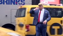 Un imitador de Donald Trump dirige el tráfico frente a la Torre Trump de Nueva York