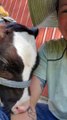Leya, the witty rescued cat, leaped onto her owner's should surprising them. She began playing with and nibbling on her ponytail.<br /><br />*The underlying music rights are not available for license. For use of the video with the track(s) contained therein, please contact the music publisher(s) or relevant rightsholder(s).”