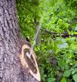 Tree sprays water after having branch removed