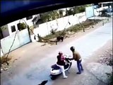 These dachshund puppies were intrigued by the white horses in a field and ran up to them. However, the horses hilariously chased them out of the field and the puppies ran back to their owner.