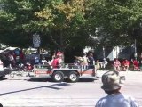 Shows a parade through bunting-draped streets, probably in the town of Leominster, Mass. | dG1fcWMyLXlKY2lVUGc