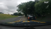 Por volta das 19h10 do dia 07/05/2024 equipe PRF avistou o veículo Onix, placa de MANHUMIRIM/MG no perímetro urbano de Guaíra. Ao receber ordem de parada, condutor do Onix iniciou fuga.<br /><br />Após 30 km de fuga na BR163, na tentativa de entrar em posto de combustíveis, condutor perdeu o controle do veículo e colidiu contra um poste no pátio do referido posto.<br /><br />Neste momento, os policiais posicionaram a viatura a frente do automóvel suspeito, de modo que sua marcha fosse bloqueada e a fuga interrompida.