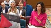 Ayuso al PSOE: "¿Va a poner lonas también la izquierda en las universidades a favor de las judías asesinadas por Hamás?"