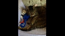 Cat Snuggles With Each Other While Sleeping Together