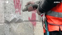 Parigi, mani rosse sul muro del Memoriale della Shoah