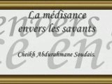 Allah Le Très Haut dit: <br />يَا أَيُّهَا الَّذِينَ آمَنُوا اجْتَنِبُوا كَثِيرًا مِّنَ الظَّنِّ إِنَّ بَعْضَ الظَّنِّ إِثْمٌ وَلَا تَجَسَّسُوا وَلَا يَغْتَب بَّعْضُكُم بَعْضًا أَيُحِبُّ أَحَدُكُمْ أَن يَأْكُلَ لَحْمَ أَخِيهِ مَيْتًا فَكَرِهْتُمُوهُ وَاتَّقُوا اللَّهَ إِنَّ اللَّهَ تَوَّابٌ رَّحِيمٌ <br />"Ô vous qui avez cru! évitez de trop conjecturer [sur autrui] car une partie des conjectures est péché. Et n'espionnez pas; et ne médisez pas les uns des autres. L'un de vous aimerait-il manger la chair de son frère mort? (Non!) vous en aurez horreur. Et craignez Allah. Car Allah est Grand Accueillant au repentir, Très Miséricordieux." (sourate 49, verset 12) <br />-Riyad as-Salihin (Les Jardins des vertueux) de l'Imam Mohieddine Annawawi 631 – 676. Traduction et Commentaire du Dr Salaheddine Keshrid (Tunisie) <br />254 - L'interdiction de la médisance et l'exhortation à bien garder sa langue <br />http://musulman007.free.fr/nouveau%20site/riyad/f254.htm <br />255 - L'interdiction de prêter l'oreille à la médisance l'exhortation à celui qui entend une médisance interdite d'y répondre et de blâmer son auteur. S'il en est incapable ou si l'on n'accepte pas de lui son intervention, il doit quitter, si possible, cette réunion <br />http://musulman007.free.fr/nouveau%20site/riyad/f255.htm <br />256 - Où est permise la médisance? <br />http://musulman007.free.fr/nouveau%20site/riyad/f256.htm <br />257 - L'interdiction de rapporter ce que disent les uns des autres pour semer entre eux la haine et la discorde <br />http://musulman007.free.fr/nouveau%20site/riyad/f257.htm <br />http://www.rasoulallah.net/index_fr.asp <br />www.dedew.net <br />http://www.ryadussalihin.org/ <br />www.islamway.com/gaza/