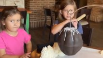 Little girl tries to smash chocolate shell but accidentally hits another girl's head