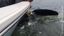 Des agents de la police des mers libèrent une tortue de son piège