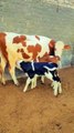 Watch this adorable moment as a baby cow enjoys a refreshing milk drink from its mother. A heartwarming scene that showcases the beauty of nature and the bond between mother and calf. Don't miss this cute and touching video