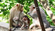 Be Careful, Strong Barry Mom Put Bella Baby on the Longtail Sliding down from the stone wall