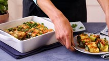 This healthy riff on lasagna rolls uses strips of zucchini instead of lasagna noodles for a vegetable-packed dinner that's fun for the whole family. This is a great recipe for kids to help make—let them get their hands dirty rolling the zucchini ribbons with the cheesy filling.