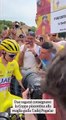Tour de France, a Piacenza due ragazzi regalano della coppa a Pogacar