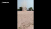 Hot air whips up mass of hay, blowing it around like tornado
