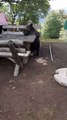 Bear Boogies on Park Bench