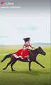 Girls riding horses are much more beautiful than driving a car.