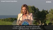 Meloni: "G7 sostiene la soluzione Usa per il Medio Oriente"