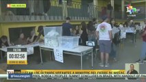 Carla Denyer, co-leader of the Green Party, walked to vote at Redland Park United Reformed Church on Whiteladies Road in Bristol. She greeted photographers and reporters outside the church, situated in a busy shopping area of Bristol, before going inside to cast her vote. Report by Covellm. Like us on Facebook at http://www.facebook.com/itn and follow us on Twitter at http://twitter.com/itn