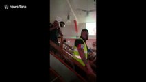 England fans celebrate the final whistle after Watkins seals 2-1 semi final win over Holland <br /><br />10/07/2024<br /><br />Boxpark, Liverpool, England