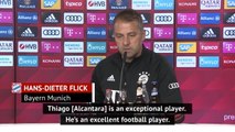 Thiago Alcantara helped lead Barcelona training with Hansi Flick as he trains to be a coach with the club