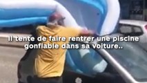 Il tente de faire rentrer une piscine gonflable dans sa voiture...