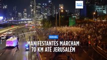 Manifestantes aguardam a chegada do primeiro-ministro israelita Netanyahu a Washington