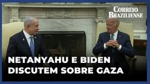 O primeiro-ministro israelense Benjamin Netanyahu reuniu-se com o presidente dos EUA, Joe Biden, na Casa Branca, para discutir um cessar-fogo em Gaza. <br /><br />A reunião, marcada por tensões nas relações entre os dois líderes, ocorre após Netanyahu prometer "vitória total" contra o Hamas. Manifestantes pró-palestinos protestaram em frente à Casa Branca, criticando a visita de Netanyahu. <br /><br />Biden, que recentemente anunciou que não buscará a reeleição, enfatizou a necessidade urgente de um cessar-fogo para aliviar a crise humanitária e garantir a libertação de reféns.<br /><br />Acesse o site:<br /><br />uai.com.br<br />em.com.br<br /><br />SE INSCREVA EM NOSSO CANAL NO YOUTUBE!<br /><br />Siga o Portal UAI nas redes sociais: <br />instagram.com/estadodeminas <br />twitter.com/portalUai<br />twitter.com/em_com