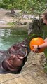 Hungry Hippos Enjoy Pumpkin Treats #wildlife #hippos