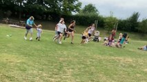 Hilarious footage has surfaced of Ryan discovering he should have trained harder for the dads' race. <br /><br />The video shows the race beginning, with all the dads sprinting toward the finish line. Ryan is determined, but his feet have other plans, leading to an embarrassing stumble. <br /><br />Just seconds into the race, Ryan takes a comical tumble as his competitors zoom past him, dashing his hopes of returning home as the winner.<br /><br />"This Sports Day race didn't turn out the way I hoped it would," the filmer commented.<br /><br />Location: Folkestone, England <br />WooGlobe Ref : WGA560795<br />For licensing and to use this video, please email licensing@wooglobe.com