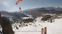 Un skieur saute au-dessus de speed flyers. Dingue