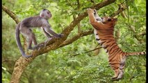 Tiger Attack Monkey On The Tree But Fail - Fallen From Tree