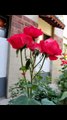 The Beauty of Red Flowers in the Front Garden of the House Terrace
