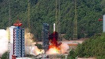A Chinese Long March 2B rocket's booster was outfitted with a parachute for a launch. The system provides controlled landing capabilities for the rocket.<br /><br />Credit: China Central Television (CCTV)
