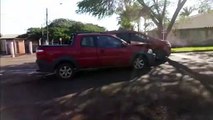 Carros batem em cruzamento e causam susto no Bairro Alto Alegre, em Cascavel