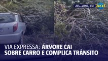 Árvore cai em carro e bloqueia via expressa