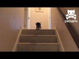 Dogs who receive unconditional love from their owners aren’t afraid to try new things, knowing that if anything goes wrong, their adoring humans will be there to help! <br /><br />Shared by Haley, this comical clip features a playful dog with a pickle toy. Everything seems normal until the pup finds himself in a bit of trouble! <br /><br />"I was recording my puppy being cute with his toy when he accidentally fell down the stairs," Haley told WooGlobe. <br /><br />Thankfully, the doggo’s human dad is right there to rescue him before he can get hurt.<br /><br /><br />Location: Cinnaminson, NJ USA<br />WooGlobe Ref : WGA973875<br />For licensing and to use this video, please email licensing@wooglobe.com