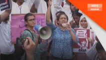 Sekumpulan kaum wanita turun di jalanan di bandar Siligury di timur India, dan berarak dengan membawa obor bagi mengekalkan tekanan kepada kerajaan.