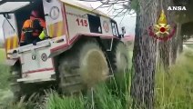 Feletto (TO), 6 set. (askanews) - Dalle ore 11:10 di stamattina squadre dei vigili del fuoco sono impegnate a Feletto (TO) per la ricerca di un uomo disperso nel torrente Orco dopo essersi ribaltato con un trattore. L'uomo è stato trascinato dalla violenza dell'acqua del torrente ingrossato dall'eccezionale ondata di maltempo che ha sconvolto il Nord Italia. Nel video la ricognizione aerea con l'elicottero Drago del reparto volo Piemonte sulla zona di ricerca. Oggi e domani una tregua nel maltempo, domenica prevista una nuova violenta perturbazione.