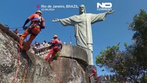 Emerging from the head of the world's tallest bronze Buddha and climbing down to its right ear, two specialist cleaners blast the imposing Japanese statue with water guns. Kazuyoshi Taguchi and Kazumi Minowa have been cleaning the 120-metre-tall Ushiku Daibatsu monument - completed in 1993 - for nearly a quarter of a century, at the start of which neither had a background in climbing.