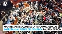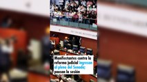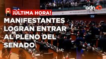 Manifestantes en contra de la reforma judicial intentan entrar a la sede alterna del Senado
