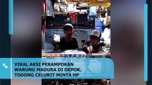 Aksi perampokan di sebuah warung Madura di Cipayung Depok Selasa 10.09.24 03.00 dini hari terekam kamera CCTV <br /><br />Terlihat kedua pelaku menggunakan sajam berjenis c3lurit dan g0lok <br />Salah satu pelaku meminta hape karena dia butuh uang bukan nyawa