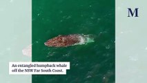 The whale was found with several lines and floats tangled around its head and midsection, likely accumulated over a period of months.