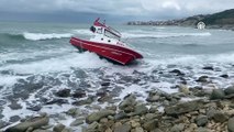 Kuvvetli rüzgarda sürüklenen tekne karaya oturdu