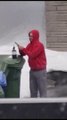 Un québécois sort dehors pour se faire des puffs aux couteaux sur un bac roulant a la vue de tous :)