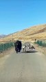 little dounkey running very fast on the road.