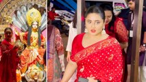 Mumbai The City Of Dreams is filled with full joy & positivity during the Navaratri Season! Tv Star Rashami Desai seeks blessings from Maa Durga during the grand Navaratri Mahotsav in Mumbai. The Star geared a ravishing red ethnic look for the Navaratri event.