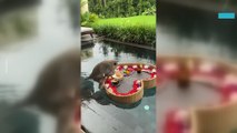 Everything was going smoothly during the fun-filled day when suddenly, this adventurous two-year-old boy decided it was time to take a leap.<br /><br />With no floating aids on, he climbed up and jumped right into the water, causing quite a stir.<br /><br />His dad sprang into action, dashing toward the pool and executing an awkward roll as he dove in to save the little boy.<br /><br />Boy's uncle remained calm, managing to keep a steady grip on his drink, unfazed by the chaos unfolding around him.<br /><br />Meanwhile, his cousin Lara quickly jumped in to help him.<br />Location: Wisbech Saint Mary, United Kingdom <br />WooGlobe Ref : WGA763527<br />For licensing and to use this video, please email licensing@wooglobe.com