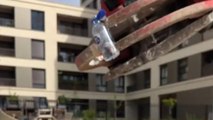 This man, after returning home from getting lunch, decided to check the hay that was set out to dry. As he tried to flip a bale using only his foot, his shoe got caught in the string and caused him to fall. This made him drop all the food and spill the drinks in the driveway.<br /><br />*The underlying music rights are not available for license. For use of the video with the track(s) contained therein, please contact the music publisher(s) or relevant rightsholder(s)