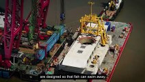 Drone footage of Hinkley C's marine engineering project to install water intake and outfall heads in the Bristol Channel