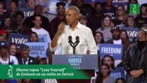 Obama rapea por Eminem en un mitin a favor de Kamala en el que el rapero participa